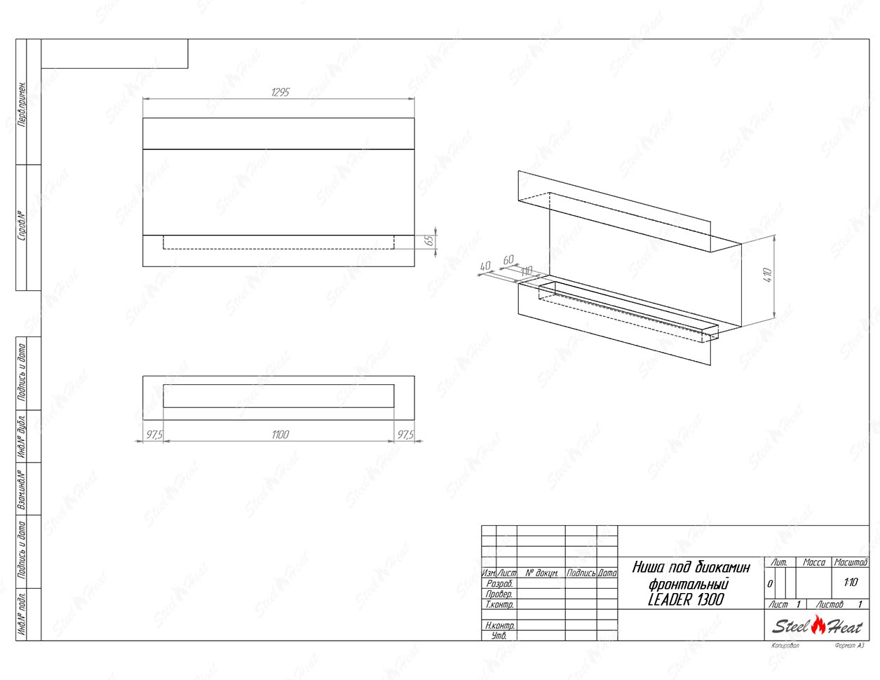 Встраиваемый Биокамин фронтальный SteelHeat Leader 1300 предназначен для встраивания в глухие ниши из гипсокартона, кирпича, пеноблоков, бетона.