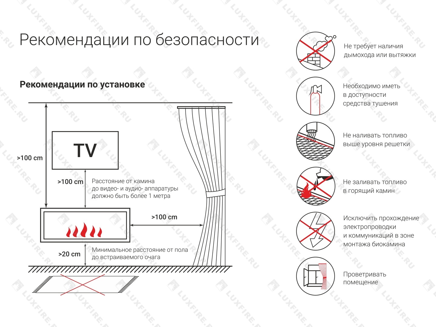 Не располагайте биокамин вблизи легко-воспламеняемых материалов : шторы, аудио-видео техника, картины и т.п.